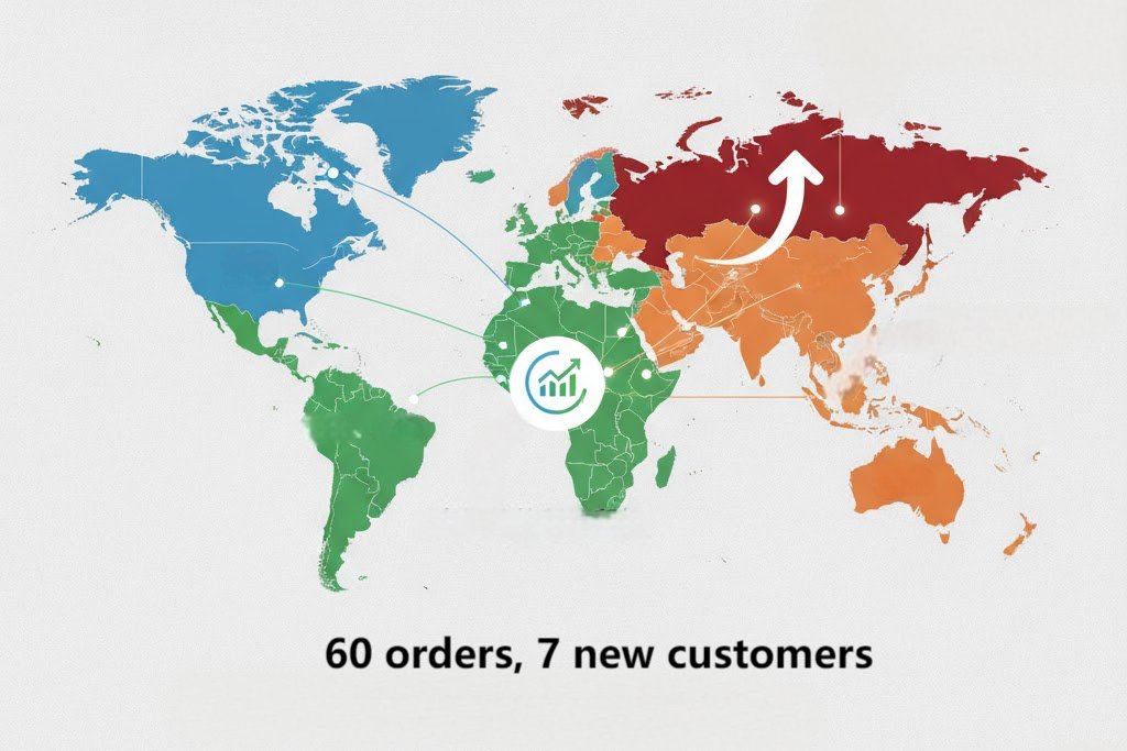 В октябре компания добилась выдающихся результатов, получив около 60 заказов, в том числе 7 новых клиентов из США, Боливии, Казахстана и других регионов, что свидетельствует о неуклонном продвижении ее стратегии диверсификации рынка. С точки зрения региональных показателей, российский рынок был особенно сильным, став важным двигателем роста бизнеса. В то же время рынки Южной Америки (такие как Чили и Бразилия) и Европы (такие как Италия и Польша) продолжали занимать стабильную долю рынка, демонстрируя сильную глобальную клиентскую базу.