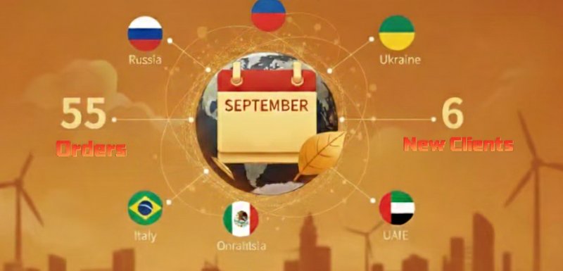 В сентябре наш международный бизнес сообщил об очередном успехе, продемонстрировав уверенный глобальный рост: было выполнено 55 заказов и успешно привлечено 6 новых клиентов. Наш бизнес расширился на ключевые рынки по всему миру, включая Россию, Украину, Бразилию, Италию, Объединенные Арабские Эмираты и Мексику, охватывая Европу, Азию, Африку и Латинскую Америку, что в полной мере демонстрирует глобальную конкурентоспособность нашей продукции.